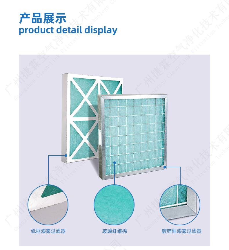 ?采用玻璃纖維以非織物方式制成,透風量大,其空氣阻力小,對漆霧Over-spray捕塵效率佳,使用時間長。